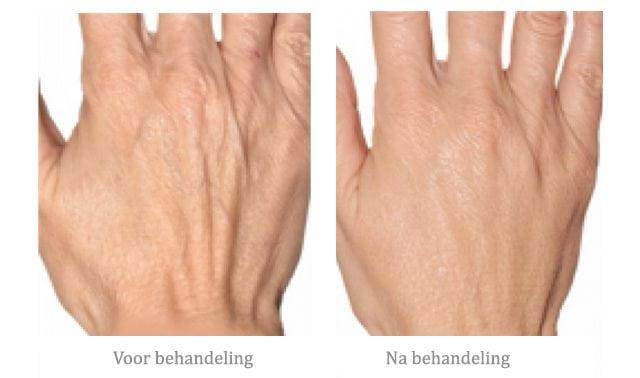 De Dermal Filler wordt in uw huid geïnjecteerd door middel van een kleine naald. De contouren van uw handen veranderen, omdat het huidvolume toeneemt. Dit geeft een jongere uitstraling.
