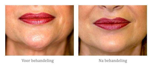 De Dermal Filler wordt in uw huid geïnjecteerd door middel van een kleine naald. De contouren van uw kin veranderen, omdat het huidvolume toeneemt. Dit geeft een jongere uitstraling.