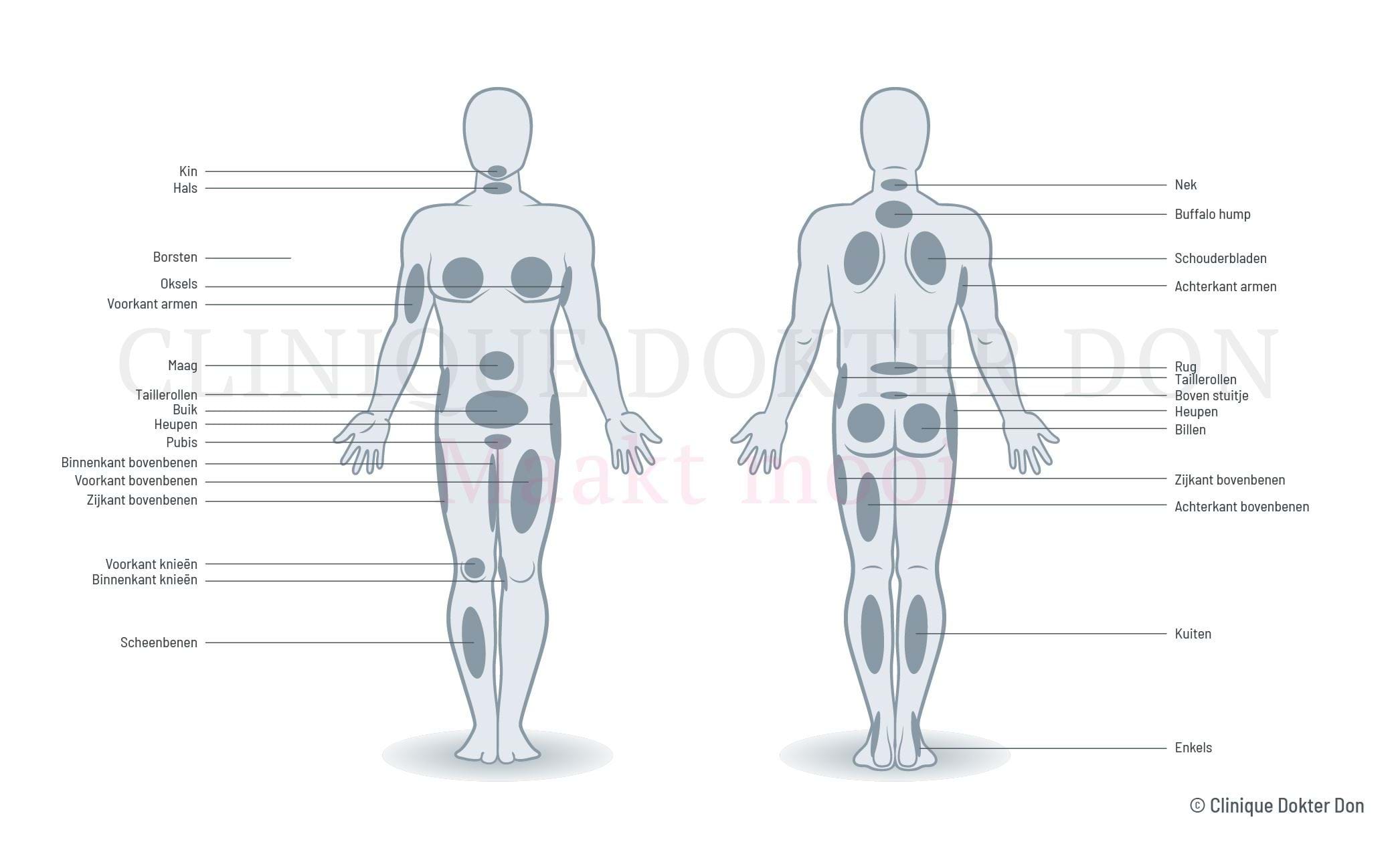 Bij het behandelen van meerdere gebieden, zullen wij een korting toepassen op het liposuctiebedrag. Kortingen/aanbiedingen zijn niet cumulatief.